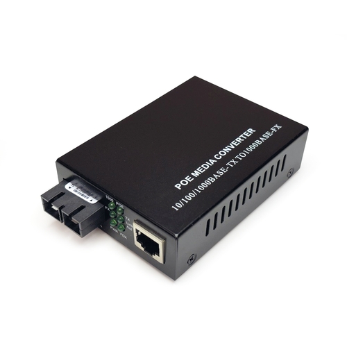 Use the PoE PSE Media Converter 10/100/1000BASE-T to 1000BASE-SX/LX to connect two types of network segments easily and inexpensively. It features a UTP RJ-45 port and a fiber port. Depending on the model, the fiber port can be an SFP slot, or a singlemode or multimode duplex fiber SC connector. The SFP model is customizable using swappable SFPs for singlemode or multimode applications.