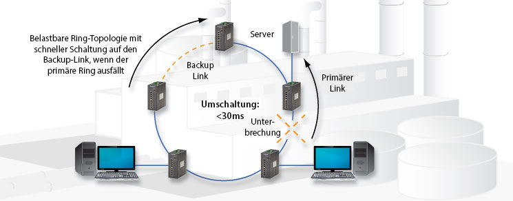 To provide the high availability, high redundancy, and high performance required for Ethernet networks in the oil and gas industry, network switches with a redundant ring protocol are recommended.