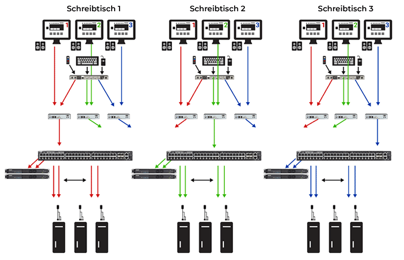 Agility Solution Secures and Updates Legacy KVM InstallationTHE CHALLENGEA long-standing Black Box customer in Sweden needed to update an existing ServSwitch Octet installation. The customer knew that their existing ServSwitch Octet had limited expansion capacity and their large assortment of new and legacy Black Box equipment meant some of their infrastructure was no longer supported. To add to their concerns, they needed to update their existing network to maximize security, comply with tough standards, and improve workflows. Encouraged by our track record, the customer naturally called Black Box when they had a requirement to upgrade their existing system to a newer secure platform. They reached out to Black Box to assist in finding a modern KVM system that could support their legacy servers with only VGA, without compromising security, while also supporting servers with both DisplayPort and DVI interfaces. Another challenge the customer faced was limited rack space. Rounding out their requirements, the client's prerequisites included the stipulation that different servers on different networks could not interact with each other, and network switches needed to separate the different servers in red and green areas (red=secure network and green=public network). A Secure KVM solution from another company was not within their budget. THE SOLUTIONThe customer considered a TEMPEST Secure KVM switch, which provides direct user and computer connections with air-gap isolation to prevent data leakage. To follow its strict protection profiles, TEMPEST also limits use of certain peripherals. Secure KVM Switches are available with up to 16 ports and 4 users, too little for the customer's application. To accommodate the customer's need for more computer and user ports, Black Box experts recommended Agility, a KVM over IP system that supports VGA and digital video. While it doesn't support the strict requirements of a TEMPEST Secure KVM Switch, Agility can be configured with strict user access rights and routes, which allowed the customer to also separate the servers with confidential information from the public systems. This traffic router in combination with user authentication matched well with the customer's security requirements, removing the need for a Secure KVM System in favor of a larger, scalable KVM over IP system. The Agility solution addressed the customer's desire to use existing VGA monitors, while futureproofing the system to support a wide range of video interfaces (DP, HDMI, DVI, VGA) on both user and server sides, including multi-monitor user consoles. Agility further met the client's security requirements as the only system that can manage VGA servers without using converters, which is critical to maximize security. Agility connects to old VGA servers as well as newer servers with digital video, while the user can use any monitor, even state-of-the-art dual monitors. The customer had limited rack space, and Agility ZeroU Server Access Modules don't require additional rack space in the customer's dense server farm. The KVM over IP solution proved to be a flexible and scalable system that seamlessly connects to the customer's current servers and users but can also easily adapt to future system growth and upgrades. The total solution was for 275 target servers (with VGA, DisplayPort, and DVI) to 30 users and various Agility Controllers and network switches. By selecting a larger KVM over IP system, the customer's network was able to handle the higher volume of computer and user ports needed. Finally, the Agility solution met the customer's need for red/green network separation in accordance with their security requirements THE RESULTThe customer now is able to securely manage their server farm with a mixture of new and older servers. While the servers are securely locked in a server room, the customer can access them from different workplaces. Multiple users can collaborate by working simultaneously on selected target servers. With their enhanced KVM solution, the client improved response times during crucial situations with new streamlined workflows and operations providing a much better overview of their system with faster server access. The workers' desktops are less cluttered and more ergonomically designed, since operators have only one keyboard and mouse to access multiple servers while monitoring them on multiple monitors. The IP based solution supports mixed HDMI, DisplayPort, DVI and VGA servers, so the customer saved the expense of completely replacing existing VGA equipment. With an eye toward the future, the customer even purchased an additional 50 Agility Server Access module units that they plan to use for future expansion. The customer will likely request similar solutions for other parts of their organization. Because the solution is network-based, the expansion capacity is virtually limitless, and the system will be easy to expand using IP technology. APPLICATION DIAGRAMIn the deployed solution pictured here, the customer's network is separated into three secure networks. The red network is #1, the public network is #2, and the admin network is #3. The red, or secure, network cannot communicate nor interfere with the other networks, and is protected from viruses and tampering. To switch between networks, the customer simply presses a remote control pushbutton.